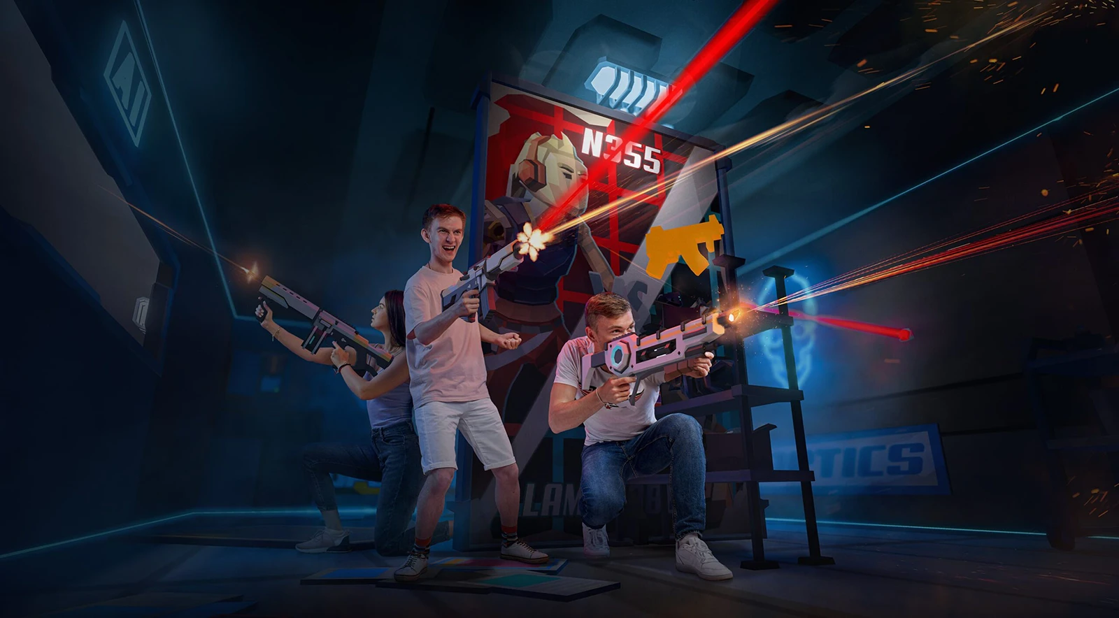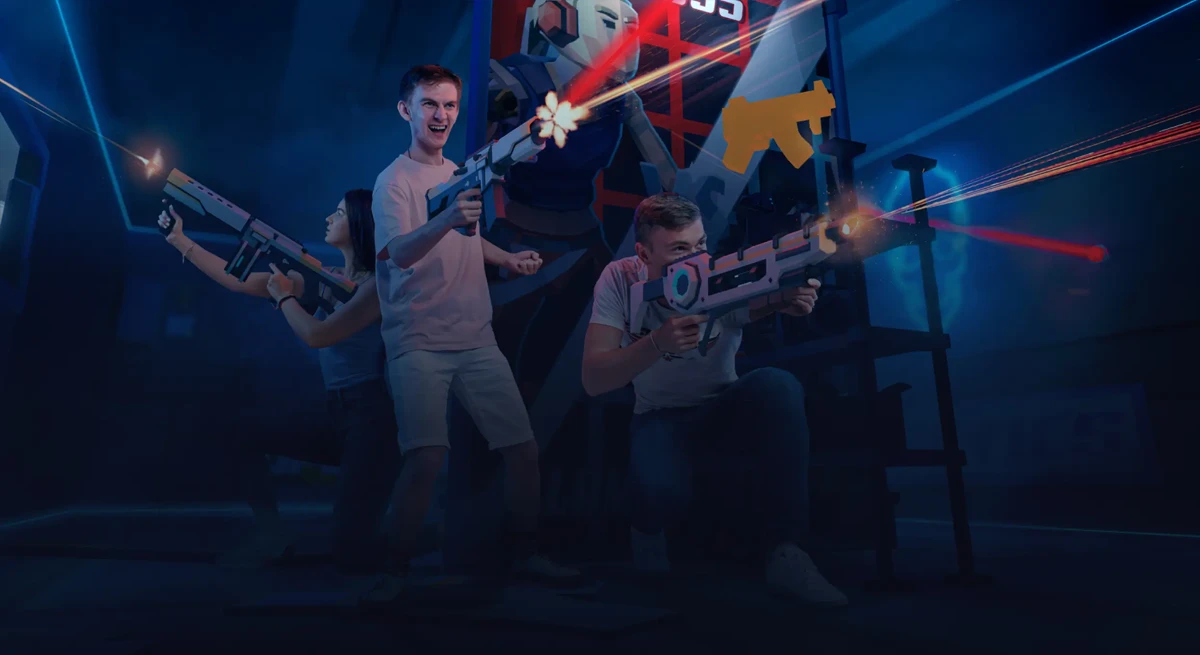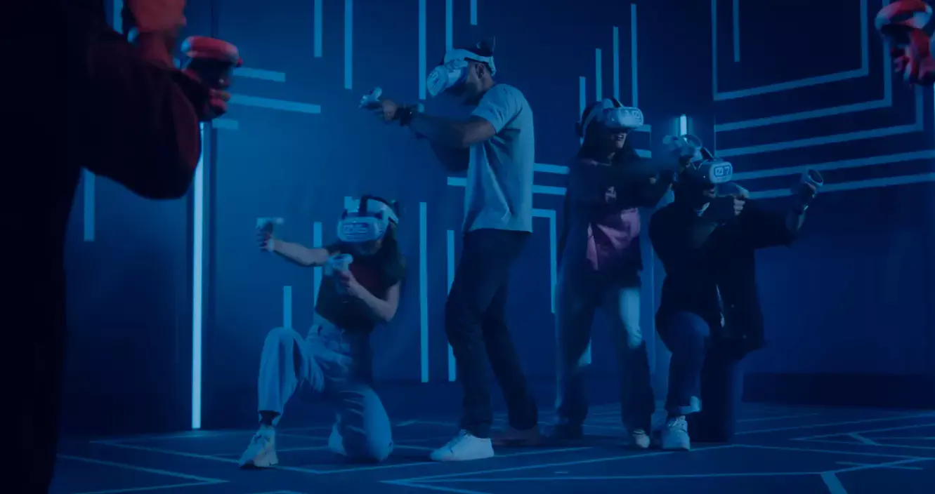 Играйте команда на команду в виртуальной реальности на арене 150 м2